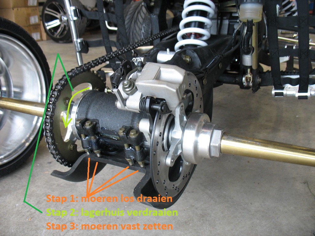 Hoe u de ketting kunt afstellen, is in het onderstaande plaatje zichtbaar gemaakt.